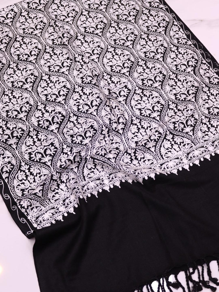 Handmade Jamwar Shawl – Black & Light Grey Z1